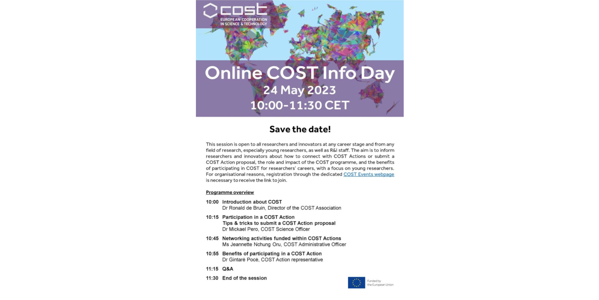 La Acción COST es una red de investigación interdisciplinar que reúne a investigadores e innovadores para investigar en un tema durante 4 años. Estas redes están abiertas a todos los campos de la cien...