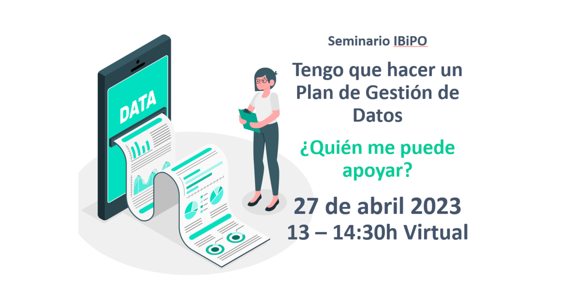 El próximo día 27 de abril 2023 organiza la Oficina de Proyectos Internacionales Biosanitarios (IBiPO) el seminario “Tengo que hacer un Plan de Gestión de Datos – ¿Quién me puede apoyar?”. Esta activi...