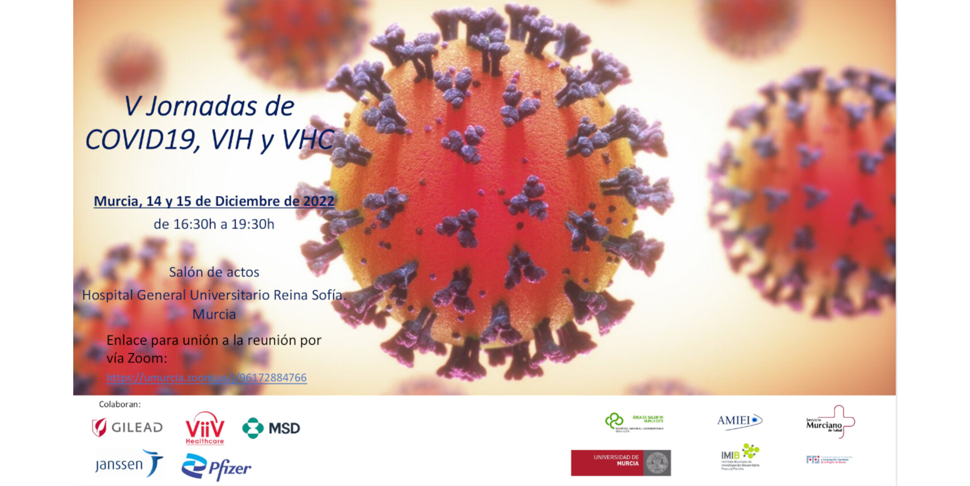 Celebración de las V Jornadas de COVID19, VIH y VHC en el salón de actos del Hospital General Universitario Reina Sofía de Murcia durante los días 14 y 15 de diciembre, promovidas por la Asociación Mu...