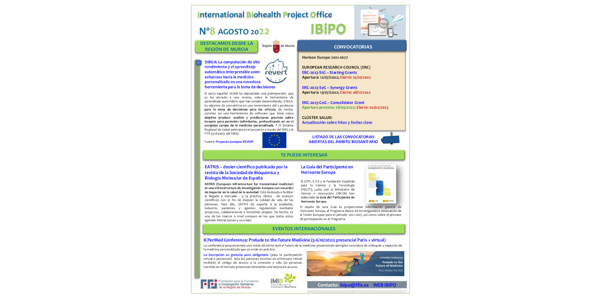 En el boletín IBiPO de este mes destacamos desde el proyecto europeo REVERT a SIBILA - la herramienta de aprendizaje automático que ha estado desarrollando el socio español UCAM y que ha depositado un...