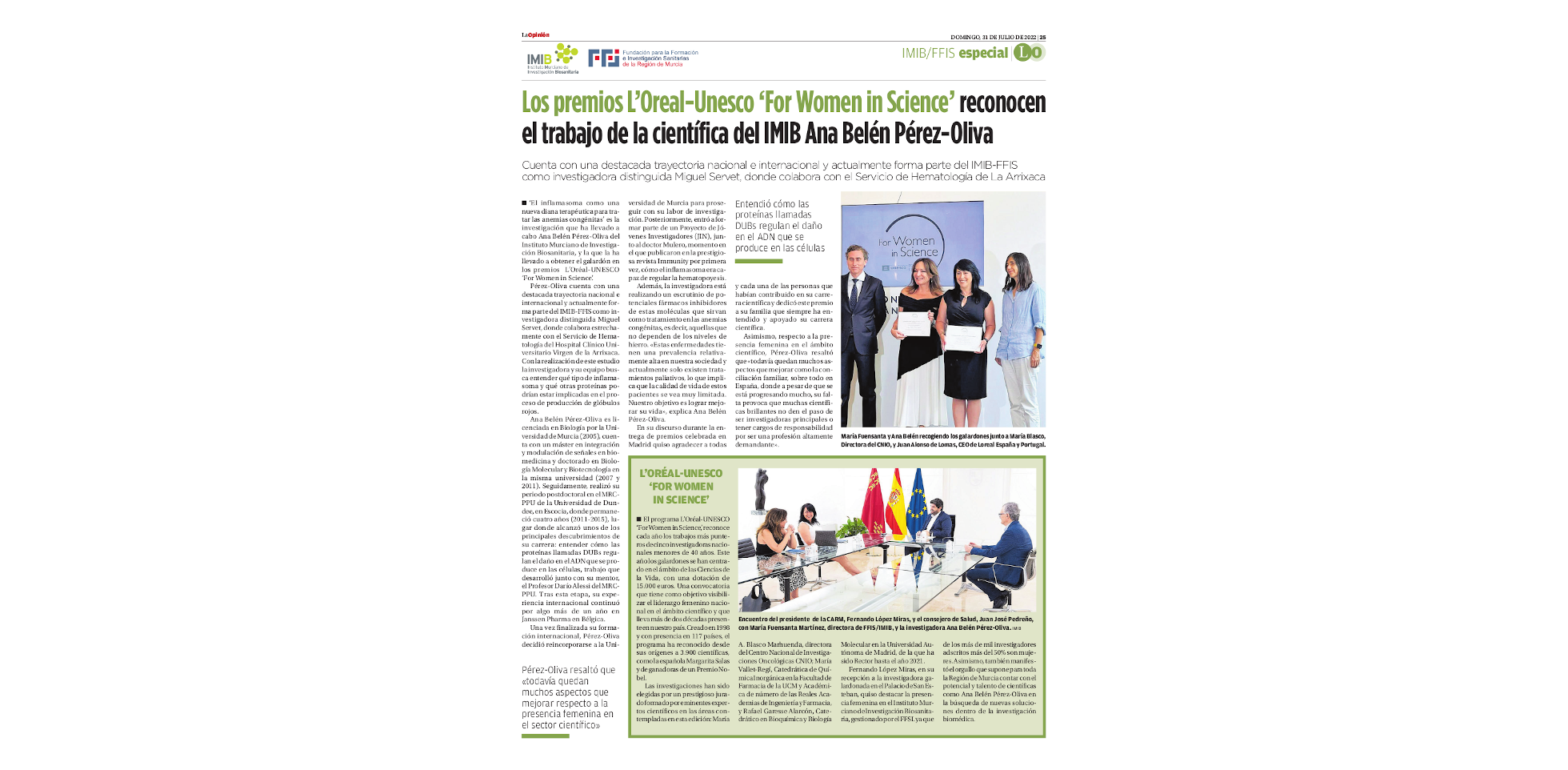 La Opinion 11 Septiembre 2022: Pablo Conesa, del IMIB, investiga el cáncer colorrectal con el equipo referente mundial de la Dra. Whitehall La Opinion 11 Septiembre 2022: Viva In Vitro, primera empres...