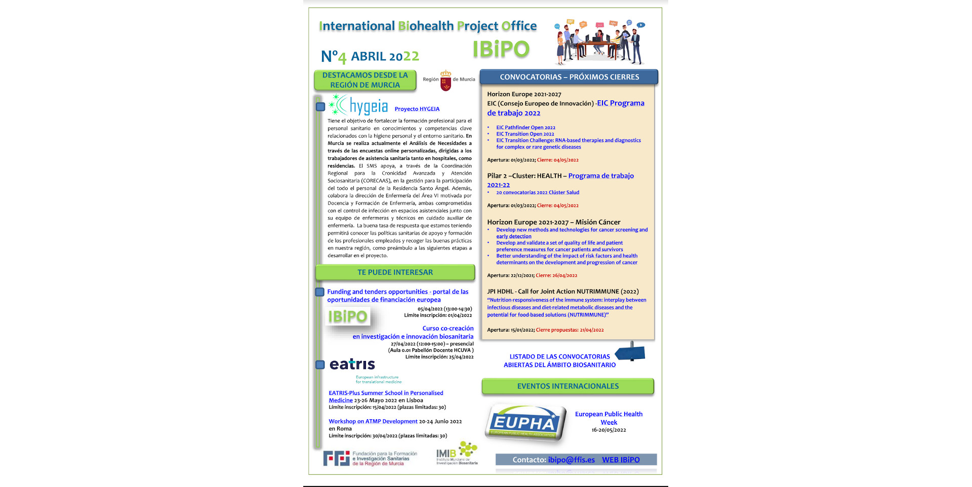 Destacamos los avances del proyecto europeo HYGEIA que realiza actualmente en Murcia el Análisis de Necesidades a través de las encuestas online personalizadas, dirigidas a los trabajadores de asisten...