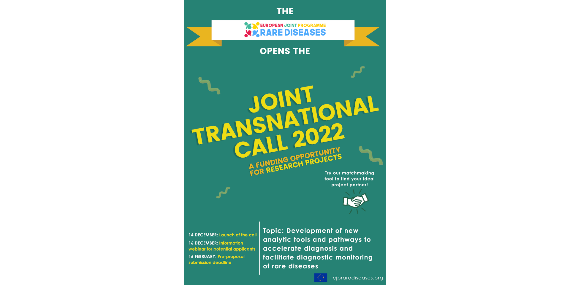 El Programa Conjunto Europeo sobre Enfermedades Raras (EJP RD) ha lanzado el pasado mes de diciembre una nueva Convocatoria Trasnacional Conjunta 2022 centrada en el “Desarrollo de nuevas herramientas...