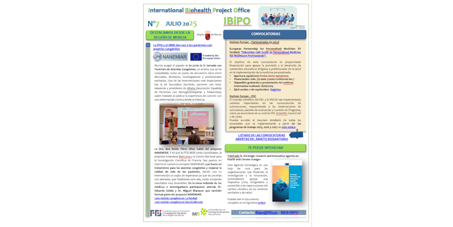 En esta nueva edición del boletín IBiPO destacamos la III Jornada con Pacientes de Anemias Congénitas organizada el pasado 17 de junio en Murcia, un evento que se ha consolidado como un punto de encue...