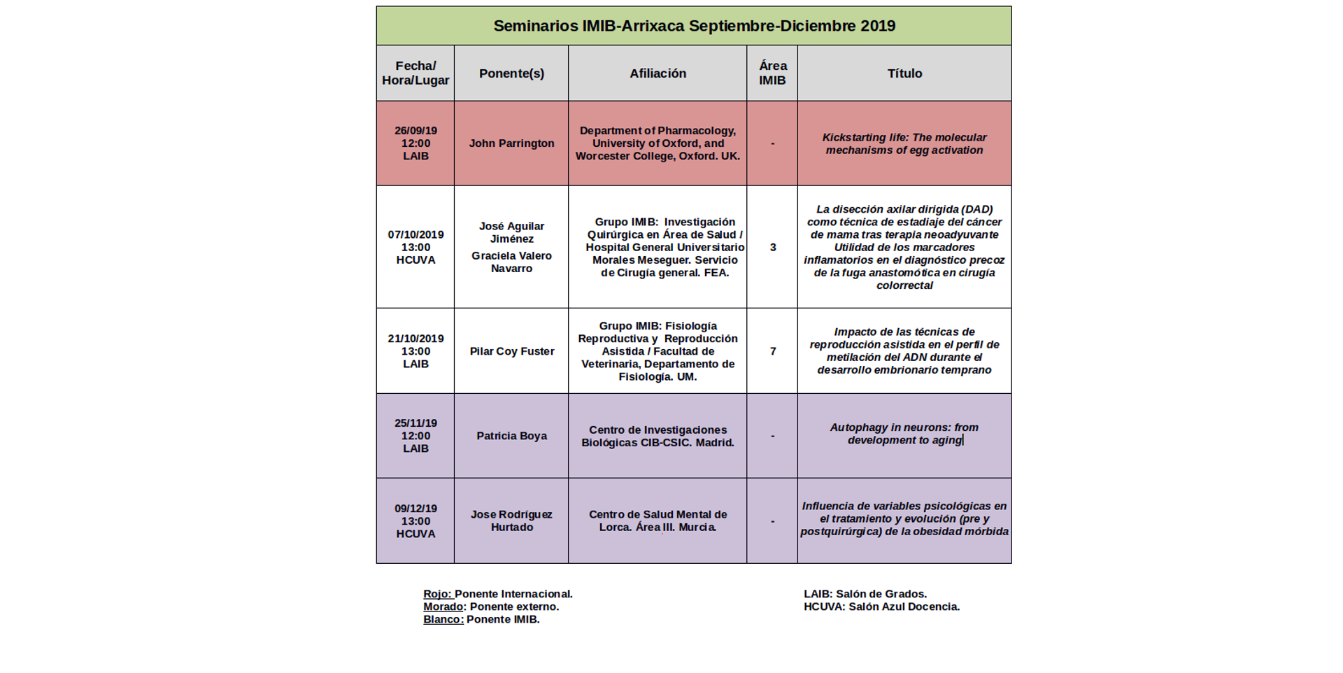 Seminarios IMIB-Arrixaca Septiembre-Diciembre 2019