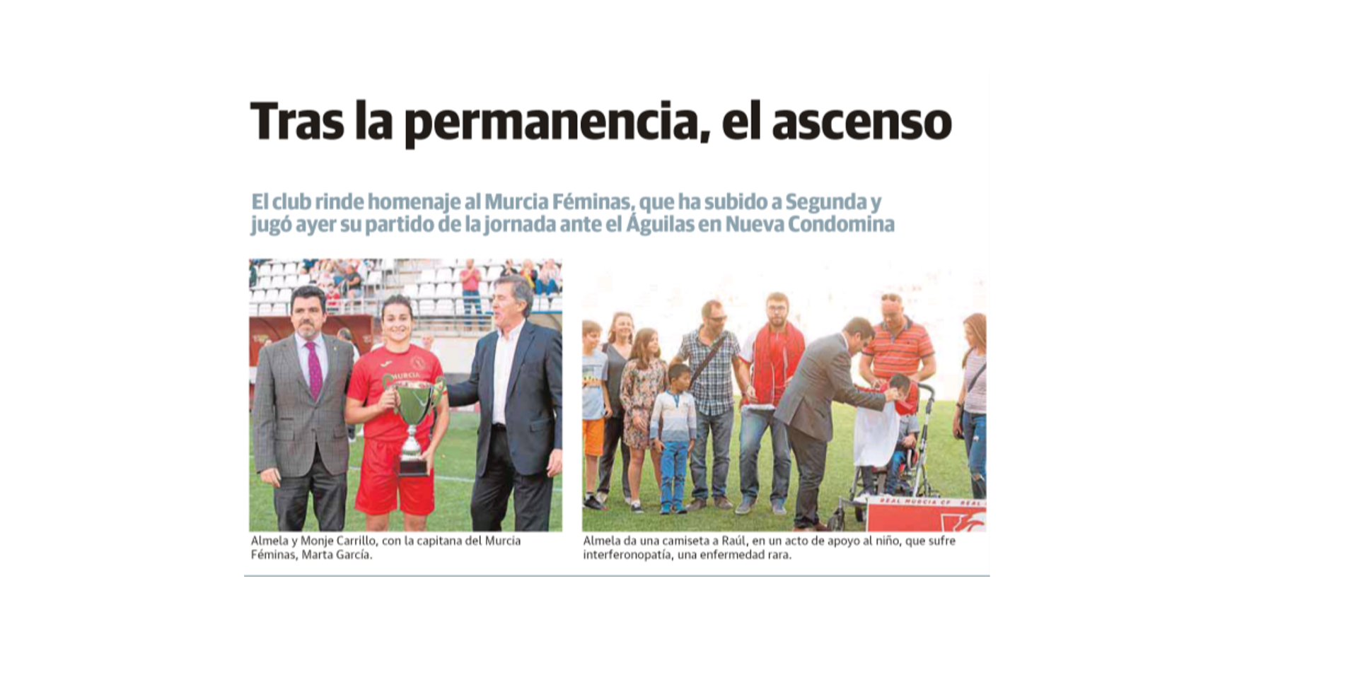 Los investigadores de Inmunidad, Inflamación y Cáncer del IMIB-Arrixaca acompañaron el pasado domingo a Raúl a conocer a la plantilla del Real Murcia Club de Fútbol durante su partido en la Nueva Cond...