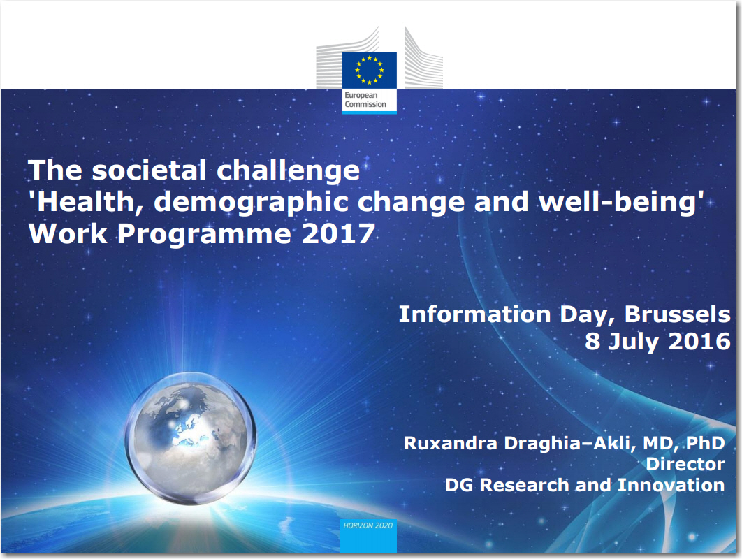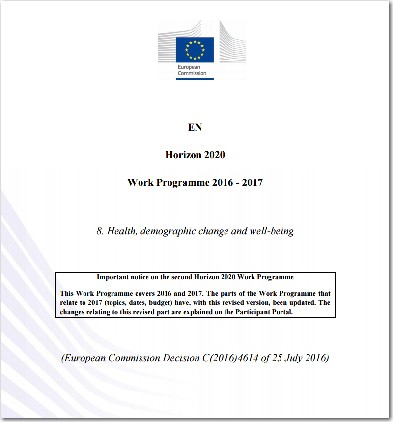 El 29 de julio de 2016, la Comisión Europea ha abierto la convocatoria 2017 para el Reto Social 1 “Salud, Cambio Demográfico y Bienestar” de HORIZON 2020.