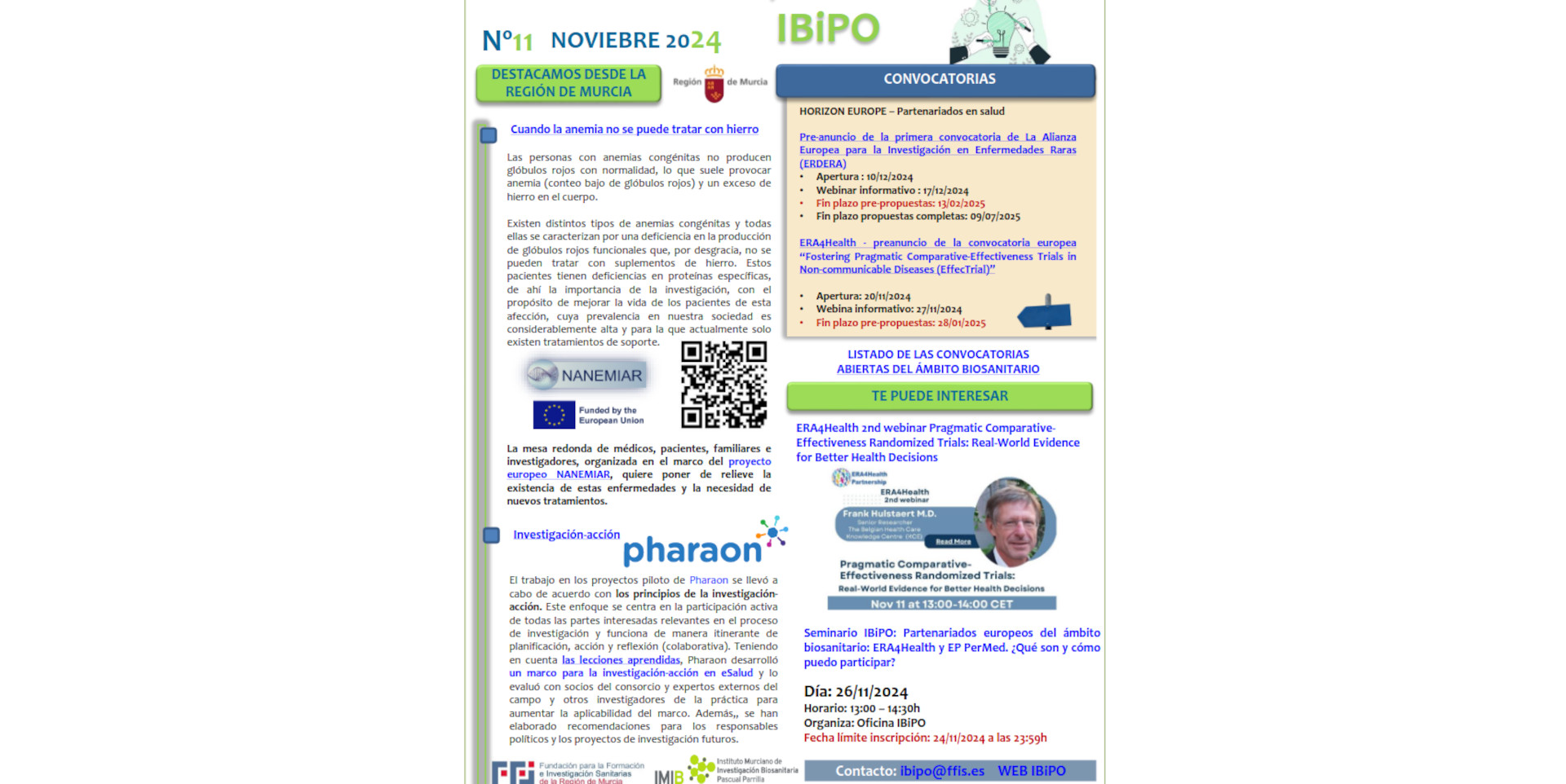 En el nuevo boletín de la oficina IBiPO destacamos la mesa redonda de médicos, pacientes, familiares e investigadores, organizada en el marco del proyecto europeo NANEMIAR, quiere poner de relieve la ...