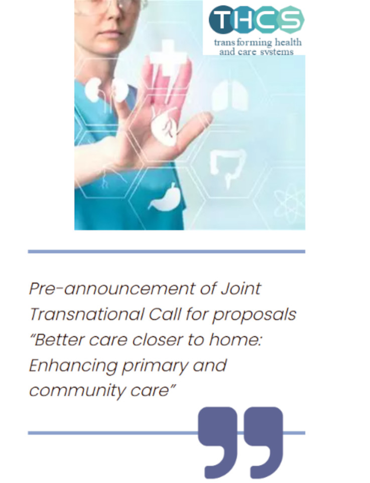 La iniciativa Transforming Health and Care Systems (THCS) preanuncia su tercera convocatoria transnacional conjunta de propuestas “Mejor atención más cerca del hogar: Mejorar la atención primaria y co...