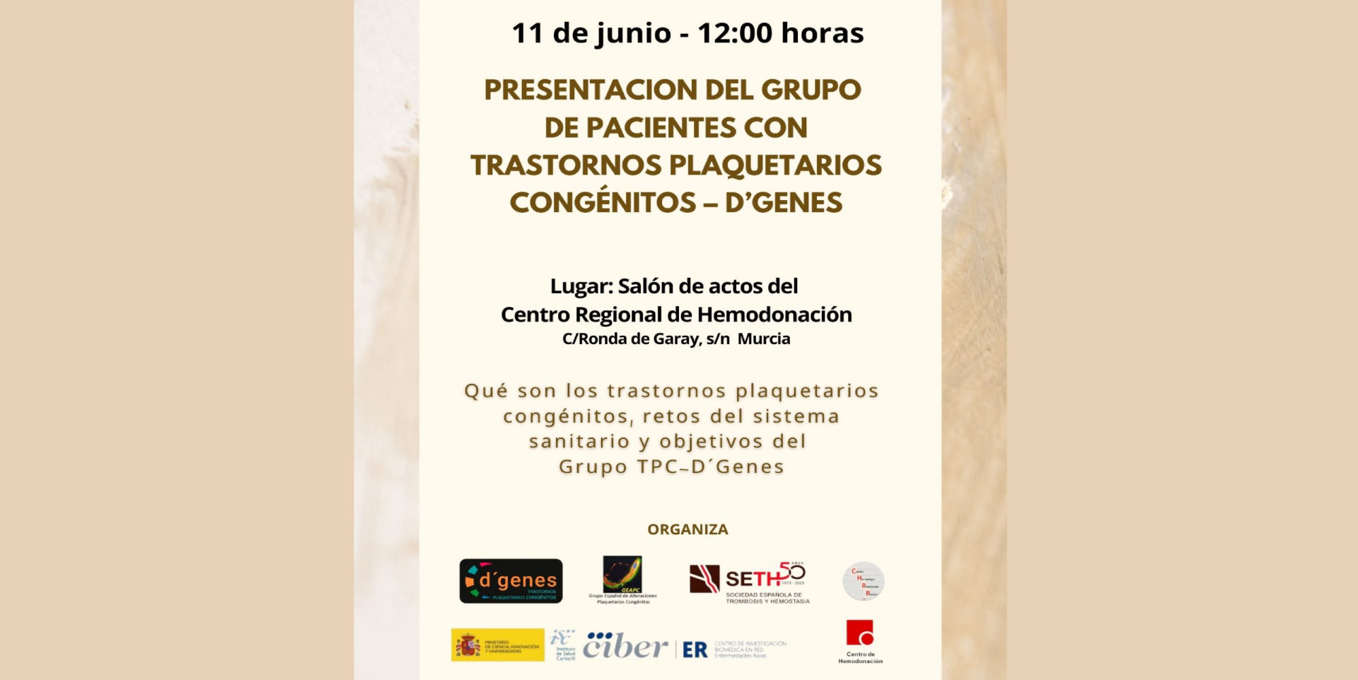El próximo martes 11 de junio a las 12 de la mañana en el salón de actos del CRH vamos a tener un breve acto de presentación del “GRUPO DE PACIENTES CON TRASTORNOS PLAQUETARIOS CONGENITOS” (TPC) que s...