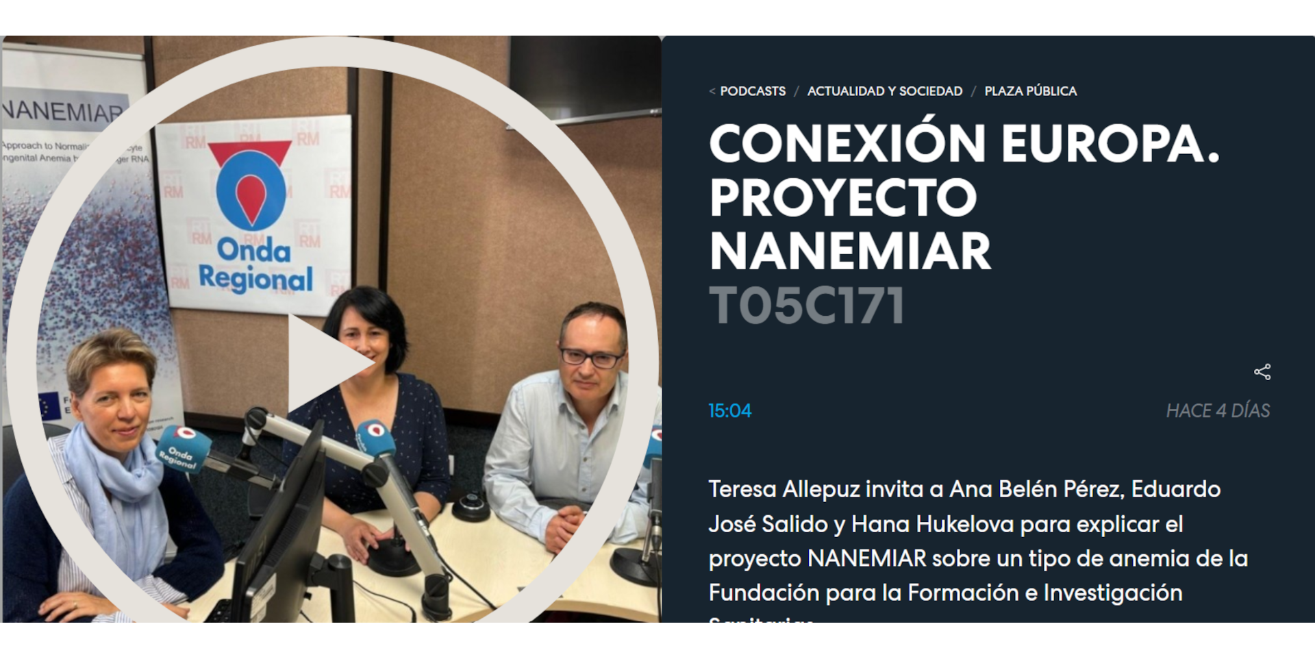 Conexión Europa de la Onda Regional (Murcia, España) es el programa de toma de contacto con la Unión Europea, pero sobre todo con proyectos europeos que se pueden visibilizar y que se hacen en la regi...