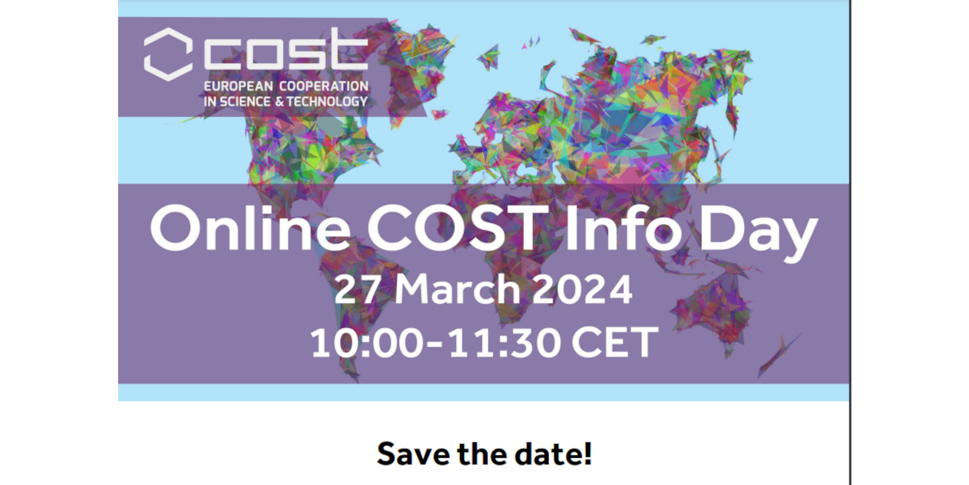 El próximo 27 de marzo de 2024 tendrá lugar una sesión informativa sobre el programa COST, en formato online. La jornada está dirigida a todos aquellos que se dedican a investigación y/o innovación de...