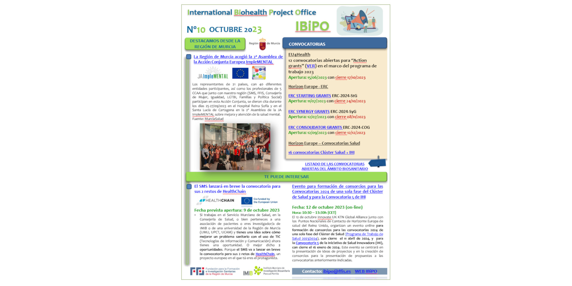En el boletín de noticias de la IBiPO de este mes destacamos la Segunda Asamblea de la Acción Conjunta europea 'JA ImpleMental' sobre mejora y atención de la salud mental que acogió la Región de Murci...