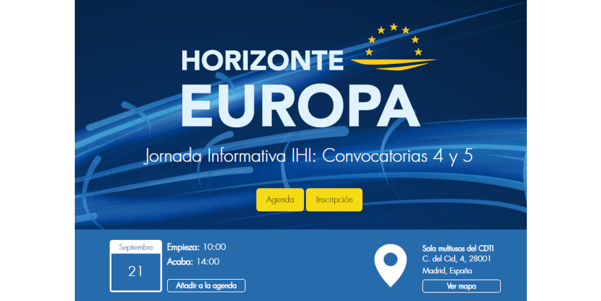 El próximo 21 de septiembre tendrá lugar una jornada informativa nacional sobre las convocatorias 4 y 5 de la Iniciativa de Salud Innovadora (IHI), organizada por CDTI en colaboración con entidades re...