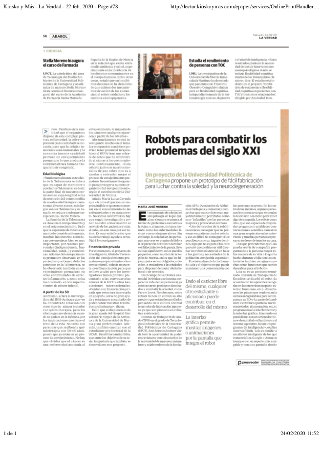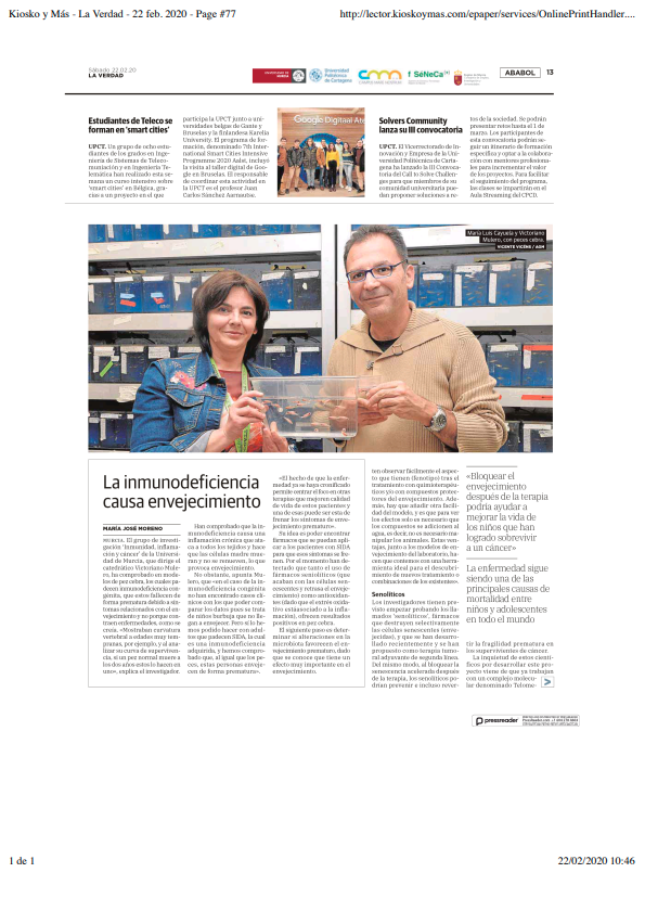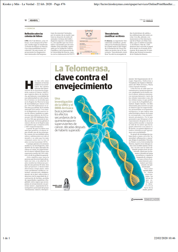 El suplemento Ababol publica un amplio reportaje dedicada a las investigaciones de Victoriano Mulero y María Luisa Cayuela. Entre los distintos estudios que lideran, buscan prevenr los efectos secundarios de la quimioterapia en pacientes que han superado el cáncer.