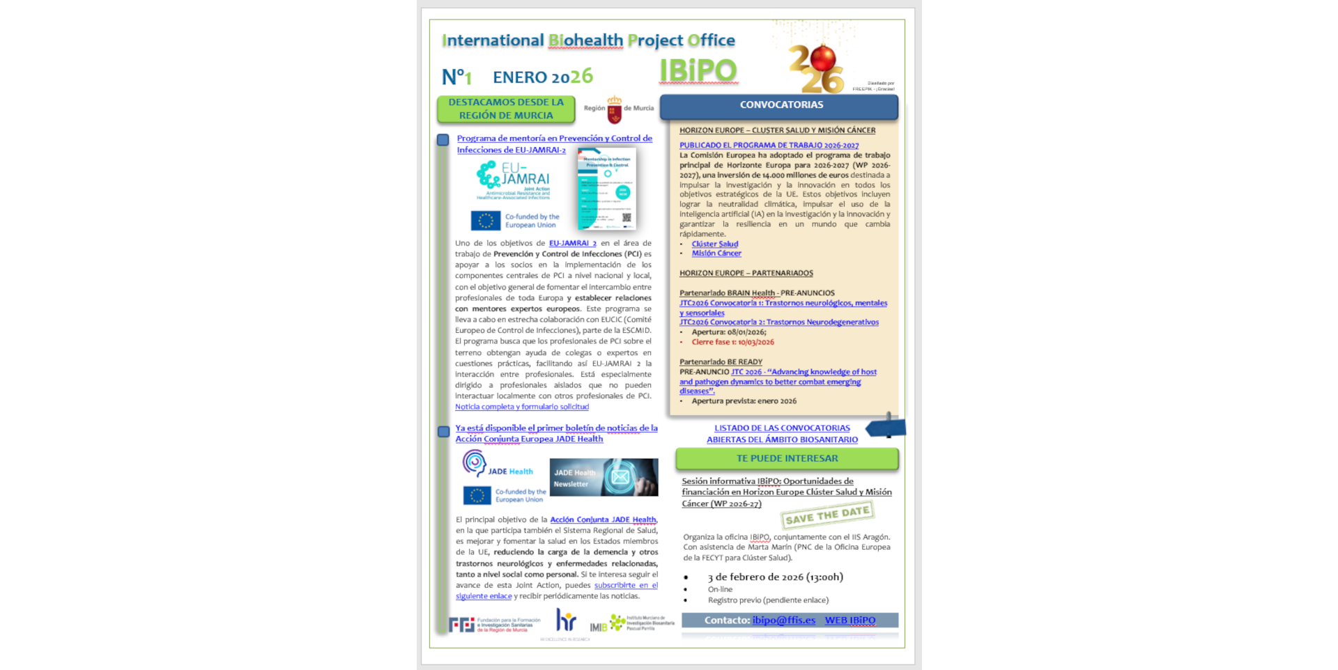 Con los mejores deseos para el año 2026, volvemos con una nueva edición del boletín informativo de la IBiPO en la que destacamos el Partenariado Europeo para la Preparación ante Pandemias (BE READY). ...