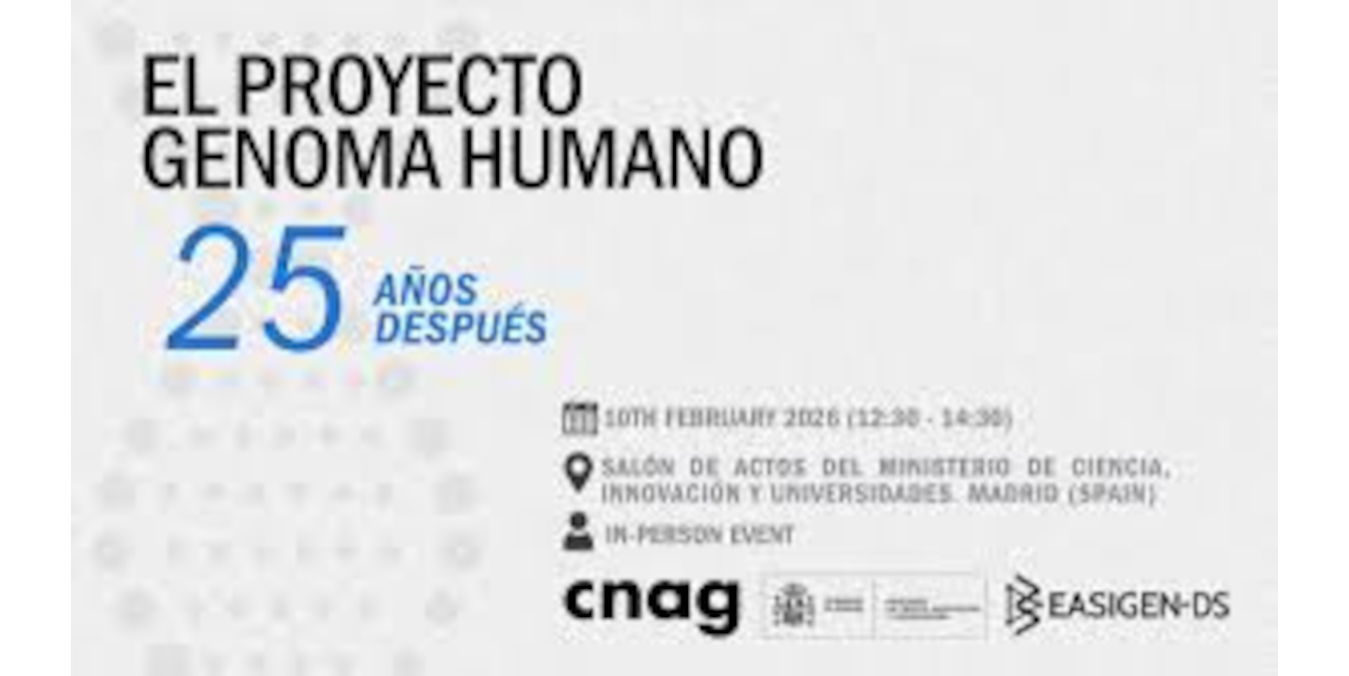 Desde CNAG e EASIGEN-DS tenemos el placer de invitaros al acto conmemorativo: “El Proyecto Genoma Humano: 25 años después”. Una oportunidad única para celebrar uno de los hitos que más ha revolucionad...