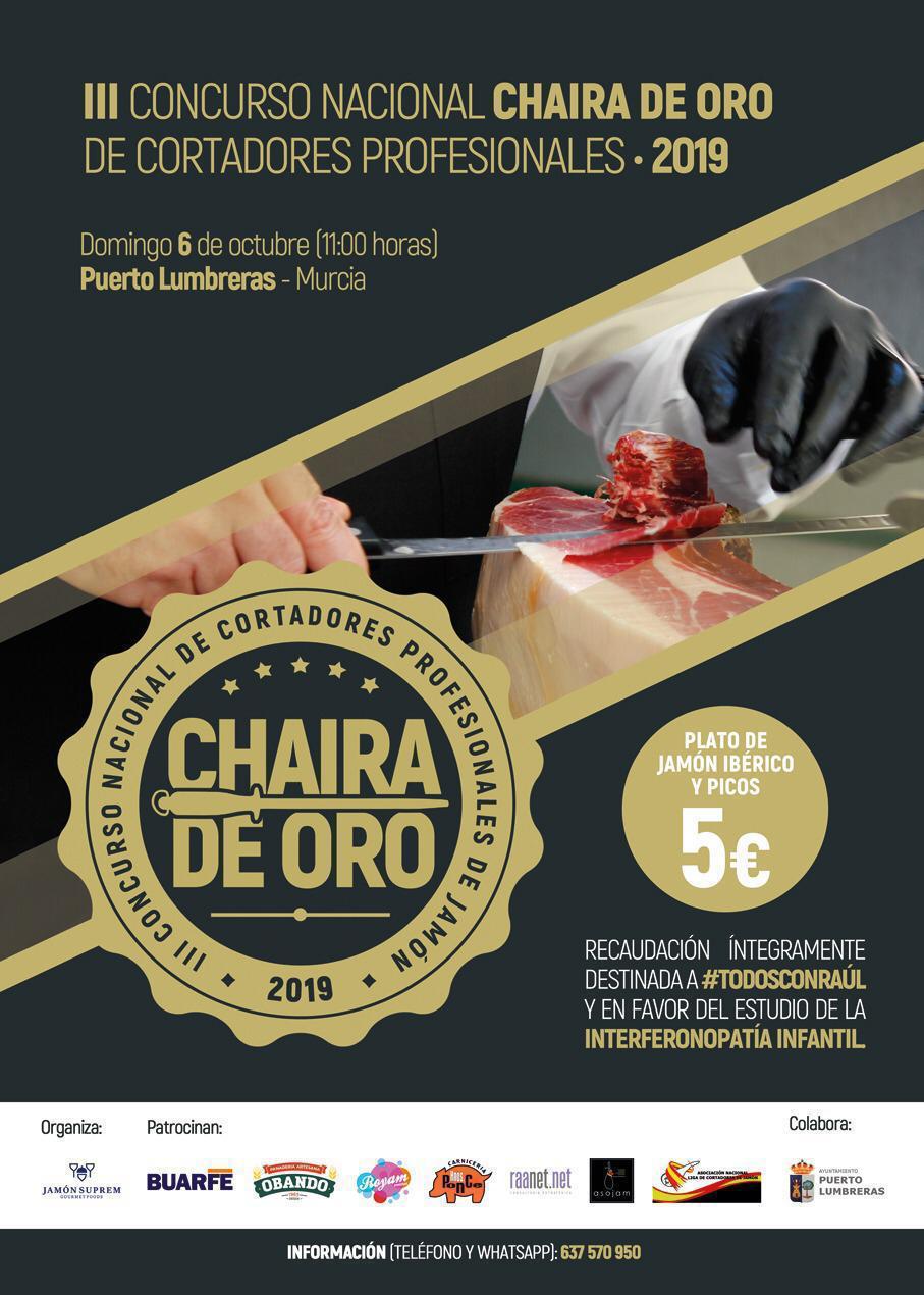 Este fin de semana se celebran dos actos benéficos para ayudar en la investigación que busca nuevas dianas terapeúticas contra la interferonopatía infantil de Raúl. Durante el domingo 6 de octubre podéis acudir al III Concurso Nacional Chaira de Oro de Cortadores de Jamón, donde la entrada de 5 € irá integramente a contratar un investigador específico para este proyecto. Además, aquellos que no puedan acudir a la cena benéfica del próximo viernes en el restaurante Rincón Huertano pueden colaborar con una entrada fila 0 por solo 7 €.