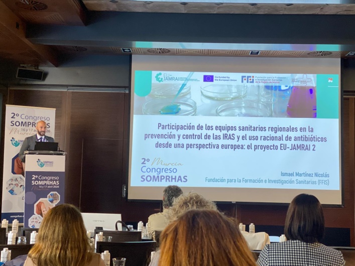 Este encuentro ha sido una oportunidad más, para dar visibilidad al proyecto y explicar a los profesionales asistentes cómo se traducirán las recomendaciones de la Unión Europea para el consumo responsable de antibióticos y el control de infecciones, en acciones técnicas concretas en el Servicio Murciano de Salud.